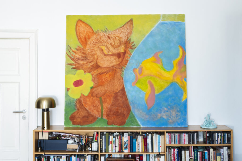 Karim Hussein, Die Katze und der Goldfisch, 2025, oil on canvas